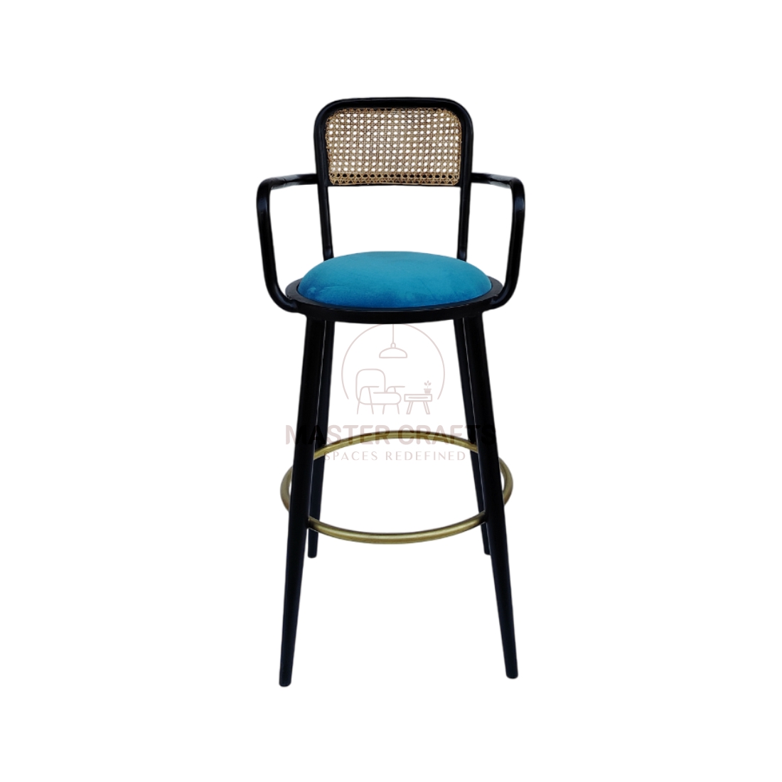 Description: The Azure Cane Bar Chair features a sturdy MS (mild steel) design frame, offering a refined and comfortable design. Perfect for modern dining spaces, cafes, or cozy corners, its compact shape blends style and ease.