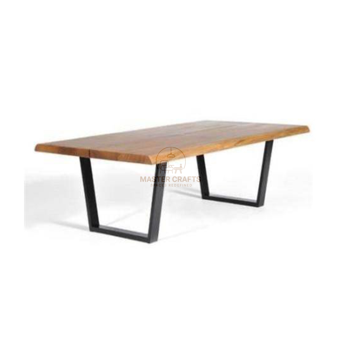 The Live Edge Industrial Coffee/Low Table captures the raw beauty of nature with its robust design. The top is a single slab of natural wood with a live edge, preserving the organic, untamed shape of the tree. This thick, rustic top is set upon two wide, low-profile black metal U-shaped legs, which create a strong, industrial contrast to the warm, imperfect wood. This piece is ideal for a modern living room seeking a grounded, artistic centerpiece that showcases unique material quality and craftsmanship.