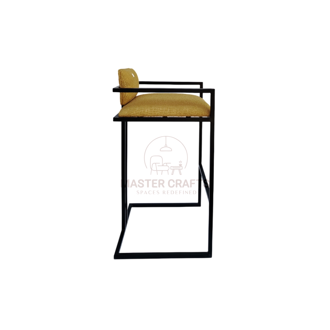Description: The Steel Haven Bar Chair features a sturdy MS (mild steel) design frame, offering a refined and comfortable design. Perfect for modern dining spaces, cafes, or cozy corners, its compact shape blends style and ease