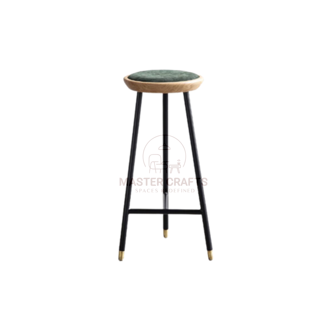 This stool embodies the essence of minimalist Scandinavian design with its clean lines and simple, elegant structure. Crafted entirely from light-toned natural wood, it features a distinctive three-legged (tripod) base that tapers gently towards the floor, giving it a light, airy, and contemporary profile. The circular seat has a subtle, comfortable contour and is complemented by a single circular metal footrest in a matte black finish, which provides stability and a modern visual contrast to the wood. This three-legged design is a statement in structural elegance and is highly versatile, perfect for modern kitchen islands, minimalist bars, or as a chic accent stool in any living space.