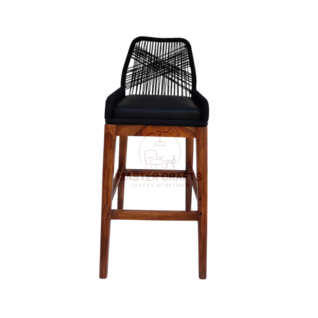 Description: The Willow Wave Bar Chair features a sturdy wooden design frame, offering a refined and comfortable design. Perfect for modern dining spaces, cafes, or cozy corners, its compact shape blends style and ease. Frame: Solid wooden frame for durability